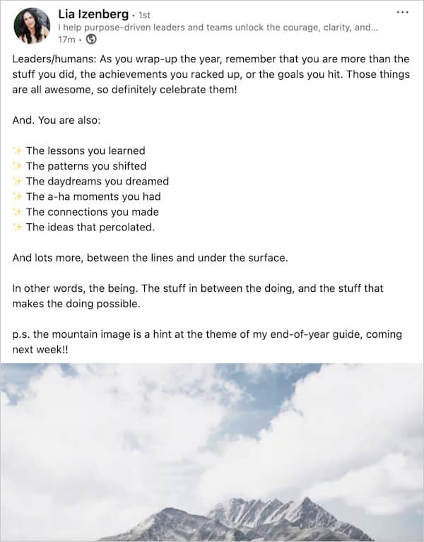 This week’s LinkedIn Spotlight comes from Lia Izenberg, and it’s the perfect reminder as we close out the year. Yes, celebrate the goals you hit—but don’t forget the growth that happened quietly in the background: the lessons, the shifts, the connections, the ideas. Leadership isn’t just what we do—it’s who we become along the way. Such a grounding message as we head into a new year.